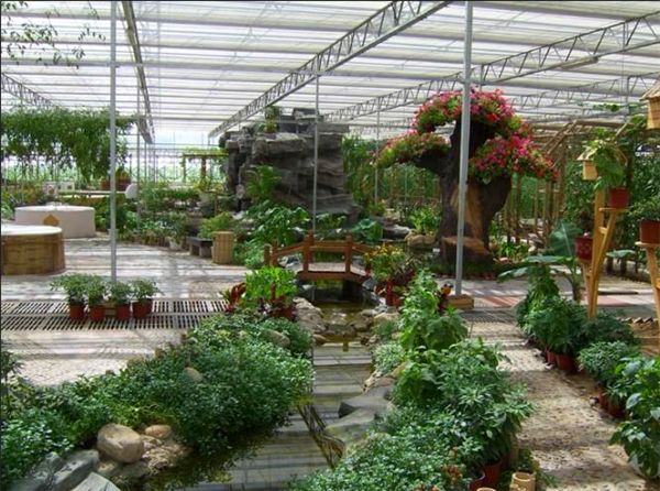 綠色生態餐廳完全按照標準溫室的結構建造,多采用文洛式,覆蓋材料多為PC板或者玻璃,結構保溫性能好,整齊規范,室內各個空間溫度均勻,有利于景觀植物的生長,鑒于餐飲布局的需要,在文洛溫室結構的基礎上,可進行局部調整。該溫室建造成本相對較低,溫室升降溫能耗低,節約后期運行費用。